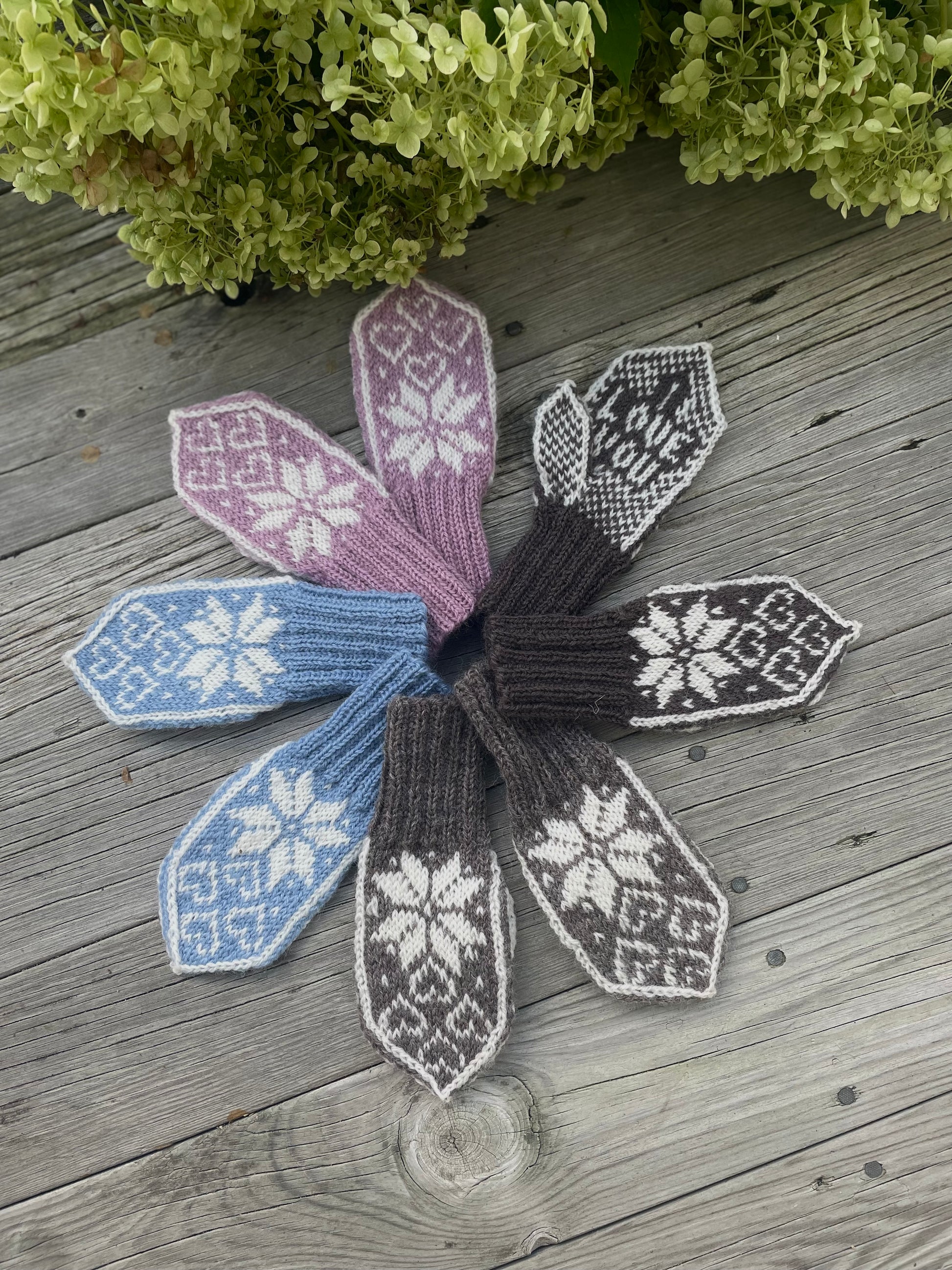 Pakken inneholder 5 strikkeoppskrifter i papirformat.
