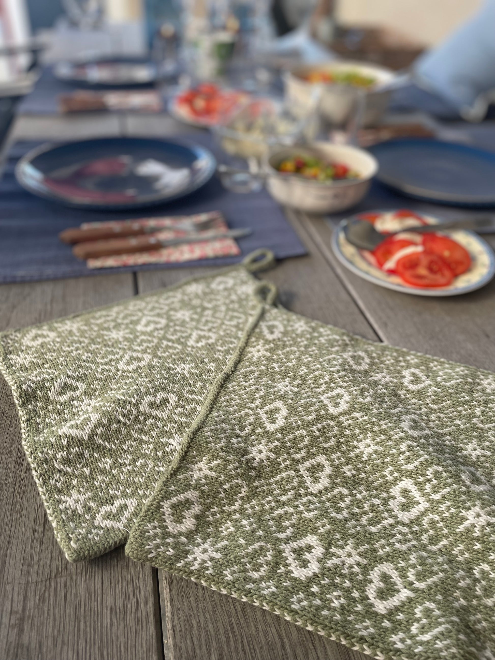Så hva med å strikke ett par grytekluter til din favoritt kokk?