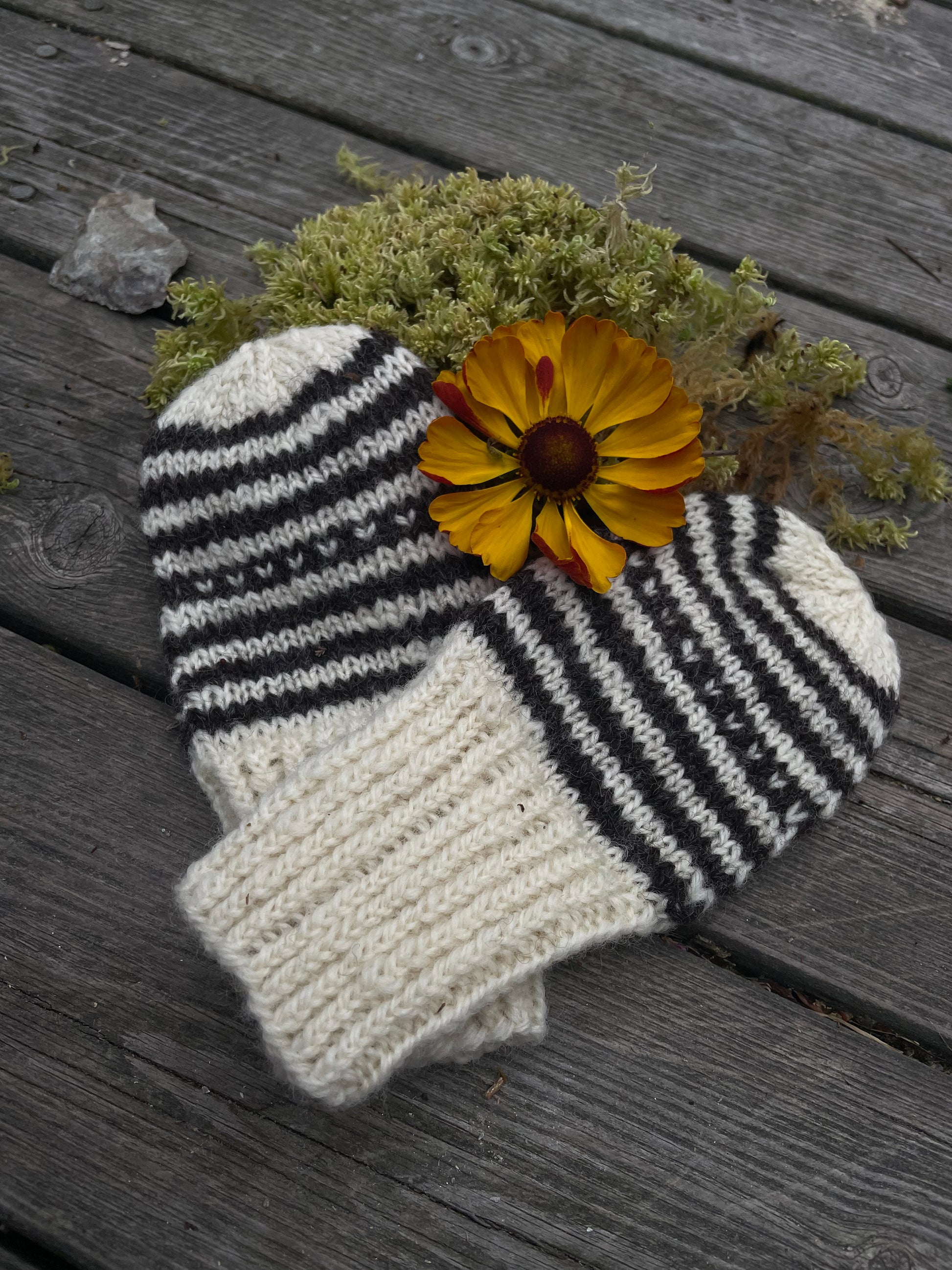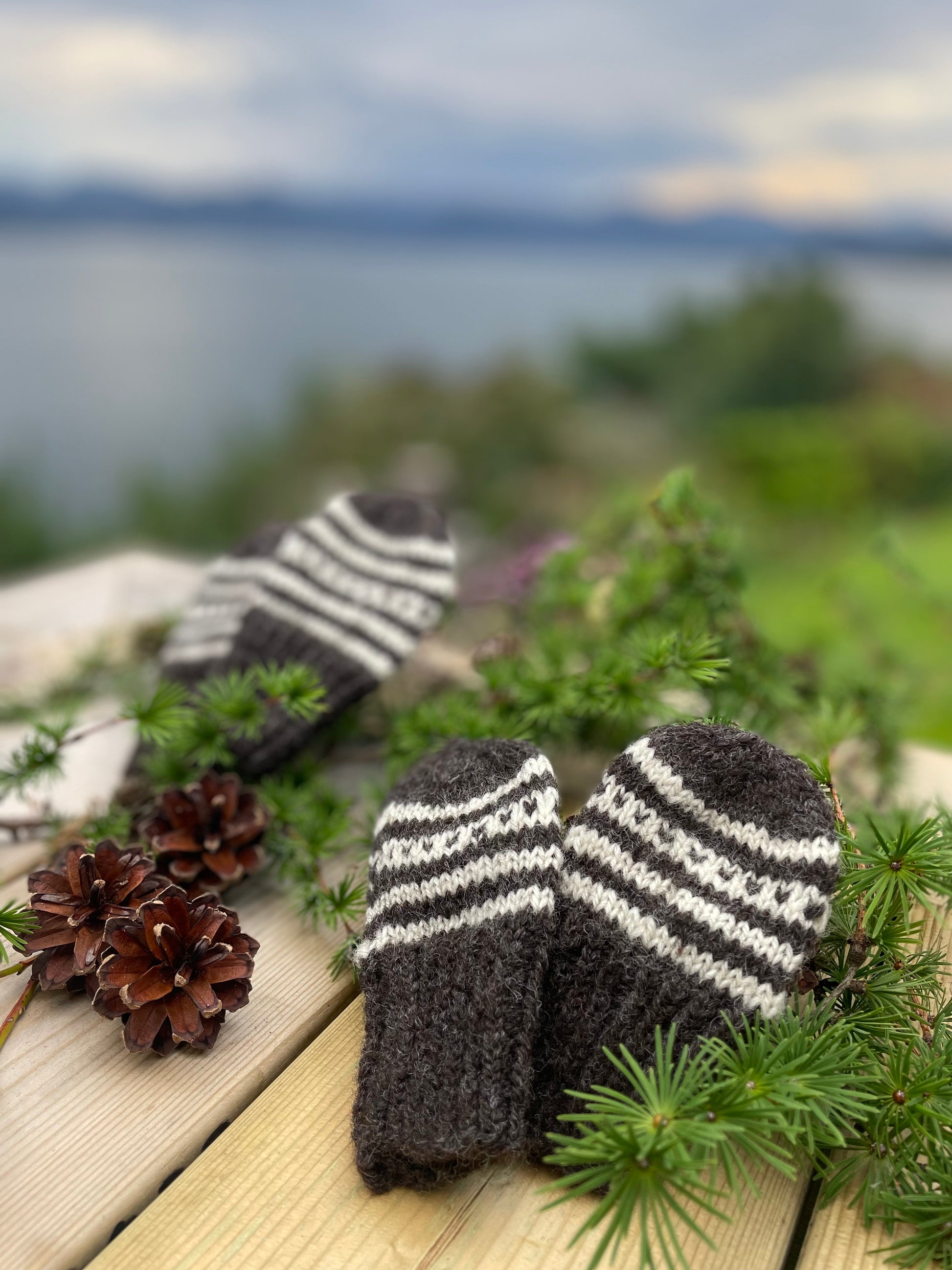 Vottene passer perfekt til små barn. Lette å ta på. og de er strikket i lammeull som vil varme godt.